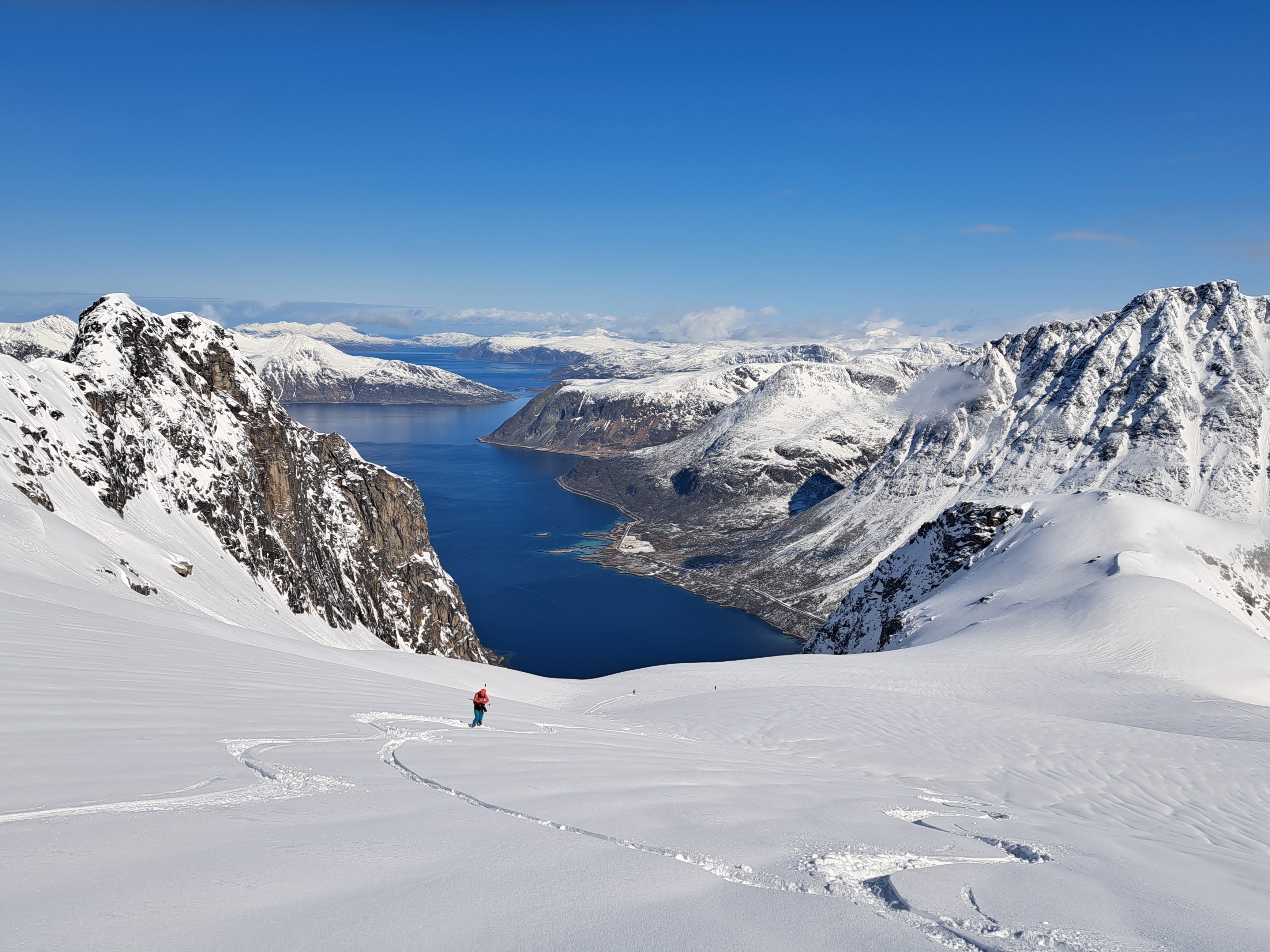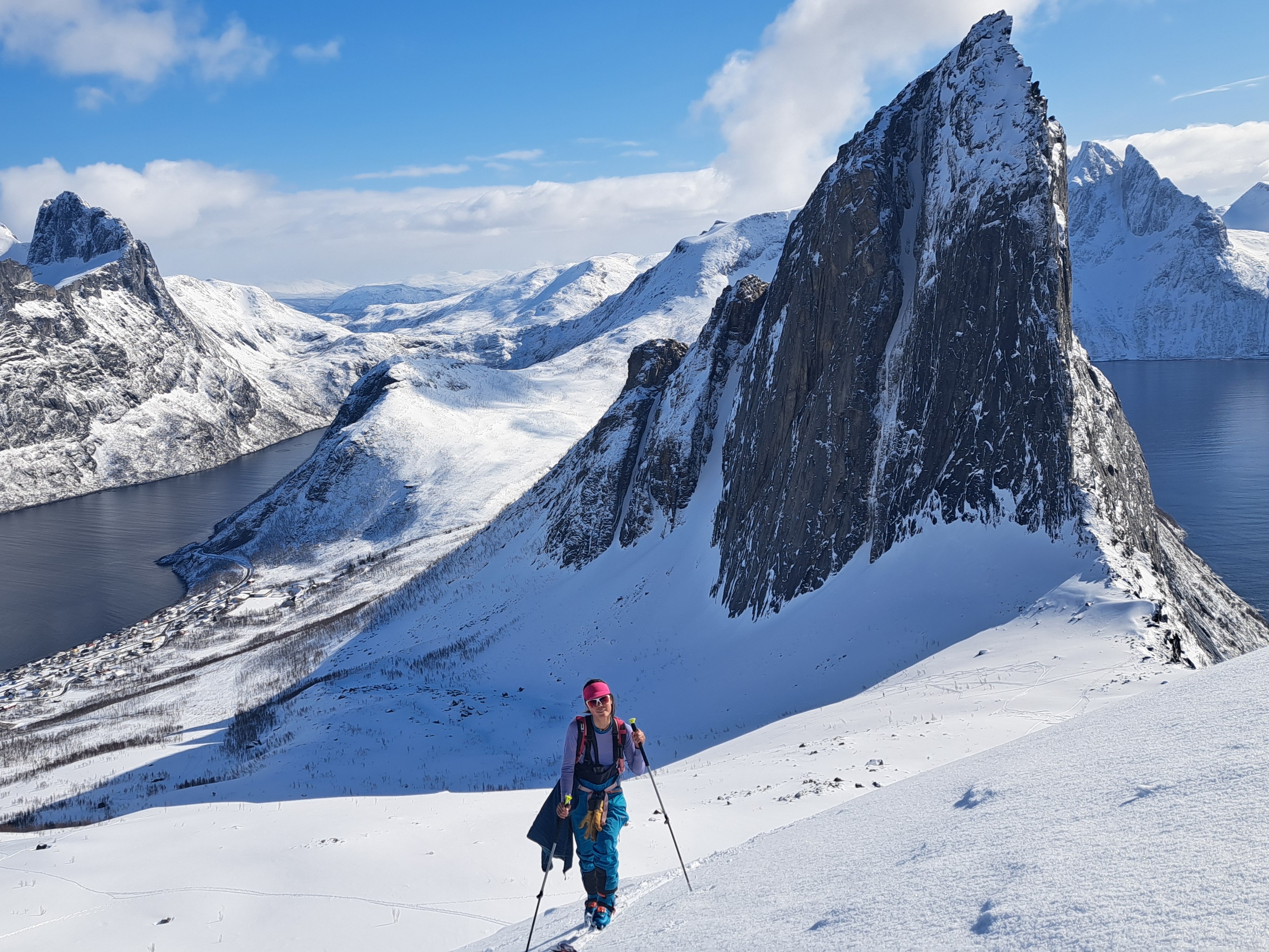 Senja – leicht erreichbare Skitouren, traumhafte Abfahrten und atemberaubendes Panorama aus Schnee und Meer.