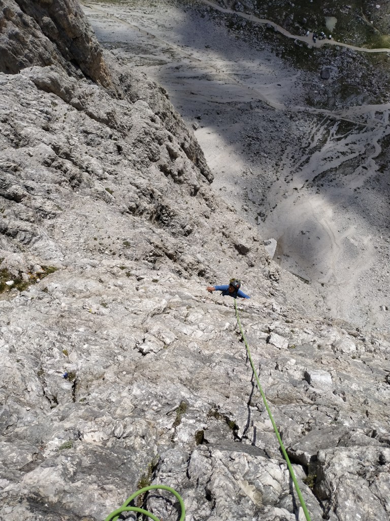 Über die markante Felskante der kleinen Zinne.